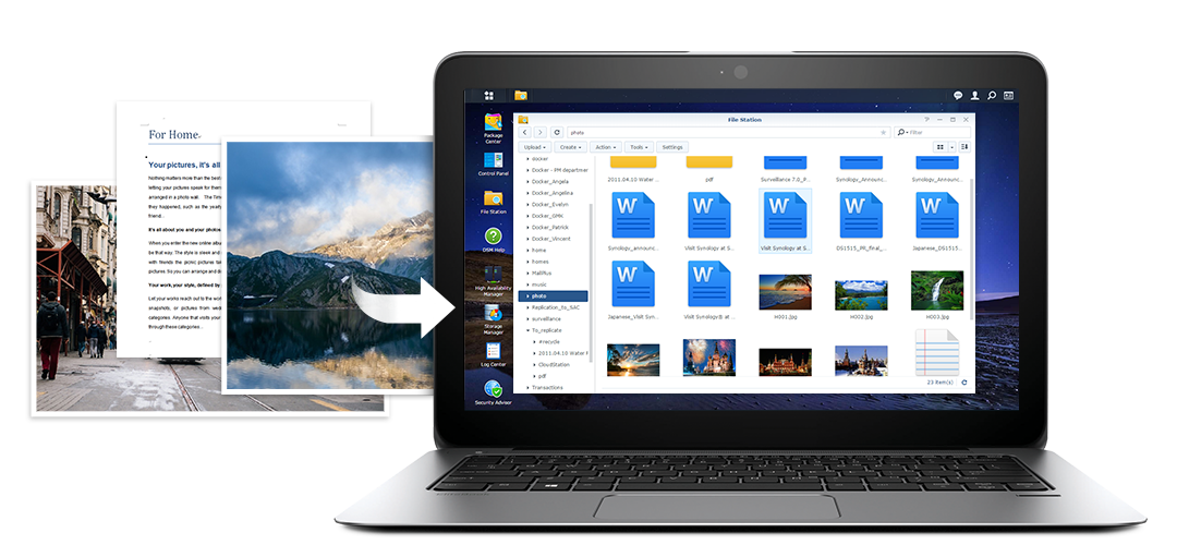 File Station 提供你一個安全又快速的方法來分享與管理存放于 DS416 上的所有檔案。只需簡單的拖拉動作,就可以從 Mac 或 PC 上傳檔案。進階過濾器讓搜尋文件、照片和影片變得更簡單。藉由內建的 FTP 或 Email 客戶端等服務,DS416 讓你可以使用更先進的網頁應用程序,輕松地管理和分享檔案。你甚至可以透過它的行動應用程序 – DS file,隨時使用其他裝置來存取、分享和管理位于 File Station 上的數字內容。此外,透過 HTTPS、SSL/TLS 加密,以及具有效期限的鏈接,可以提升在網絡上分享檔案的安全性。