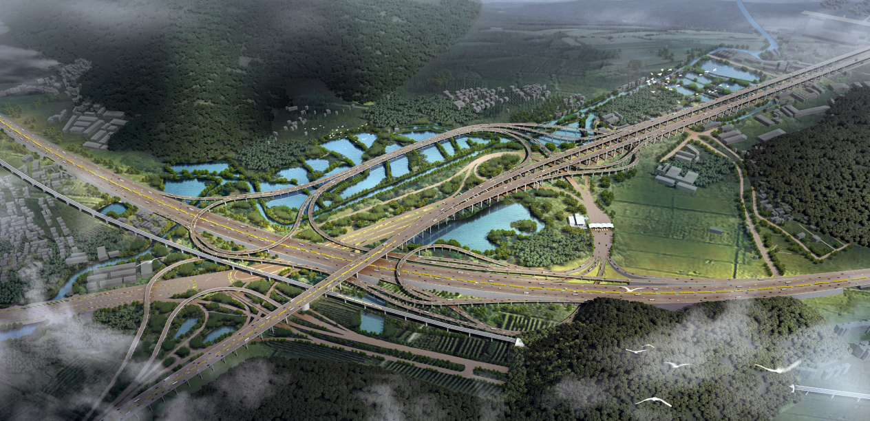 2、火炬西樞紐:與出入口互通、快速路樞紐復(fù)合設(shè)計的超大型互通立交群。