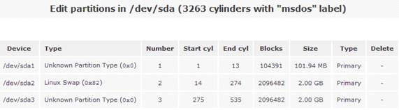 然后點擊磁盤“/dev/sda”,系統會顯示當前磁盤的詳細分區信息。如圖