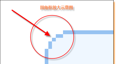純CSS方式實現圓角框的原理在網絡上已經有很多人詳細解說了,下面這個示意圖是我將其中的一個圓角進行放大后的效果。