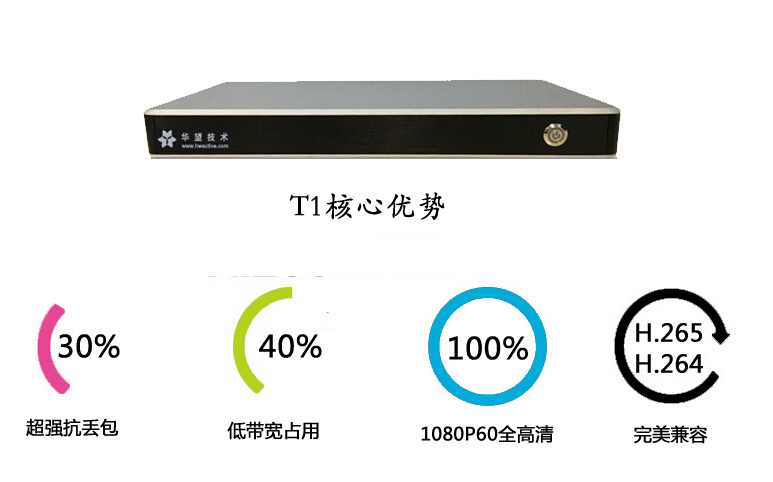 產品特性:全球首款H.265視頻會議終端 ,所需傳輸帶寬降低40%以上;1080P 60高清視頻 ;純嵌入式構架,體積小功耗低;2.4G遙控器操作