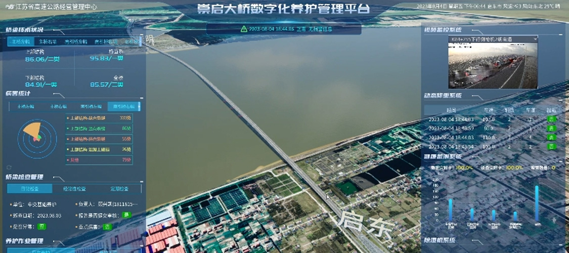 遵循“特橋特養”理念,深度挖掘崇啟跨江大橋結構特點及運營期檢監測、工程養護等數據,以數據融合算法模型為基礎,“BIM+”可視化模型為平臺,構建了基于標準化管養數據的信息化模型,集成現有檢監測及營運相關系統,利用BIM多層次建模技術,實現多系統集成的數據可視化管理,打造了橋梁“智慧空間”。